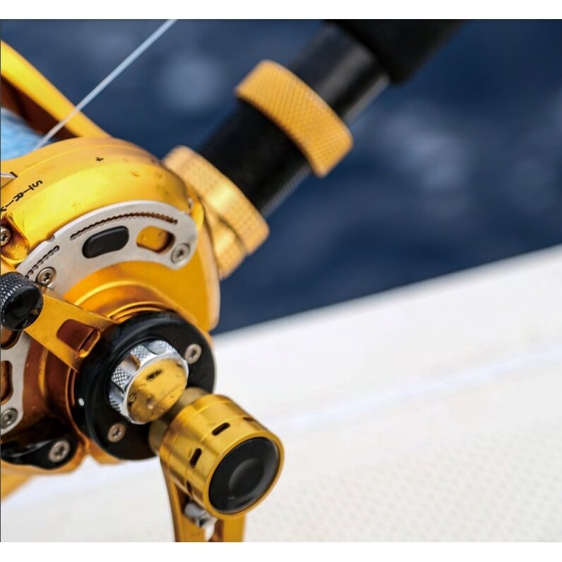 Korpusas, šoniniai dangteliai, ritė, svirties traukimo sistema ir švaistikliai, visi anoduoti Type-II, aukso spalvos.
