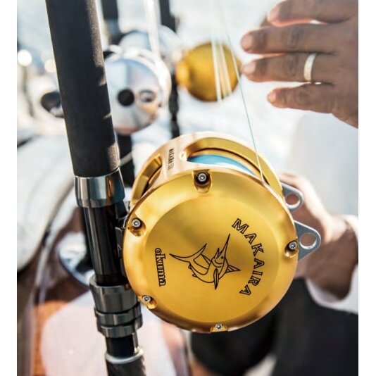 Makaira Ritė Multiplikatorius pilnai metalinė. Ritė Multiplikatorius Super Stiprumo Makaira 2 speed RH-Dešinė ranka Dvejų greičių Tūnų Žvejybai Norvegijoje Halibut žvejybai. Makaira Multiplikatorius ritės puikiai tinka sportinei žuvų, didelių tunų ir ryklių žvejybai ir Didelių menkių , Halibutų ir tt.t. Dėl unikalių, pažangių sistemų, kurias sukūrė ir užpatentavo Okuma, Makaira ritė siūlo bekompromisį meistriškumą visais savo dizaino, konstrukcijos ir veikimo aspektais.