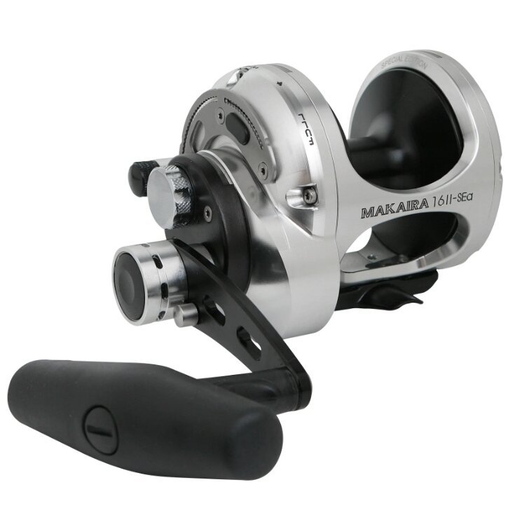 Makaira Ritė Multiplikatorius pilnai metalinė. Ritė Multiplikatorius Super Stiprumo Makaira 2 speed RH-Dešinė ranka Dvejų greičių Tūnų Žvejybai Norvegijoje Halibut žvejybai. Makaira Multiplikatorius ritės puikiai tinka sportinei žuvų, didelių tunų ir ryklių žvejybai ir Didelių menkių , Halibutų ir tt.t. Dėl unikalių, pažangių sistemų, kurias sukūrė ir užpatentavo Okuma, Makaira ritė siūlo bekompromisį meistriškumą visais savo dizaino, konstrukcijos ir veikimo aspektais. Ant matinės juodos spalvos anoduoto aliuminio rėmo sidabru išgraviruotas geltonpelekis tunas spindi taip ryškiai kaip jūra. Ši ritė yra tokia pat lygi, kaip ir aptaki, naudojant „Carbonite Dual Force“ vilkimo sistemą ir sraigtiškai supjaustytus krumpliaračius. Jo per didelė rankena ir mažesnė mažo greičio pavara, palyginti su originalia Makaira, suteikia maksimalų Makaira SEa sukimo momentą. „Makaira SEa Silver“ ir „Makaira“ šeimai suteikiama 5 metų garantija.