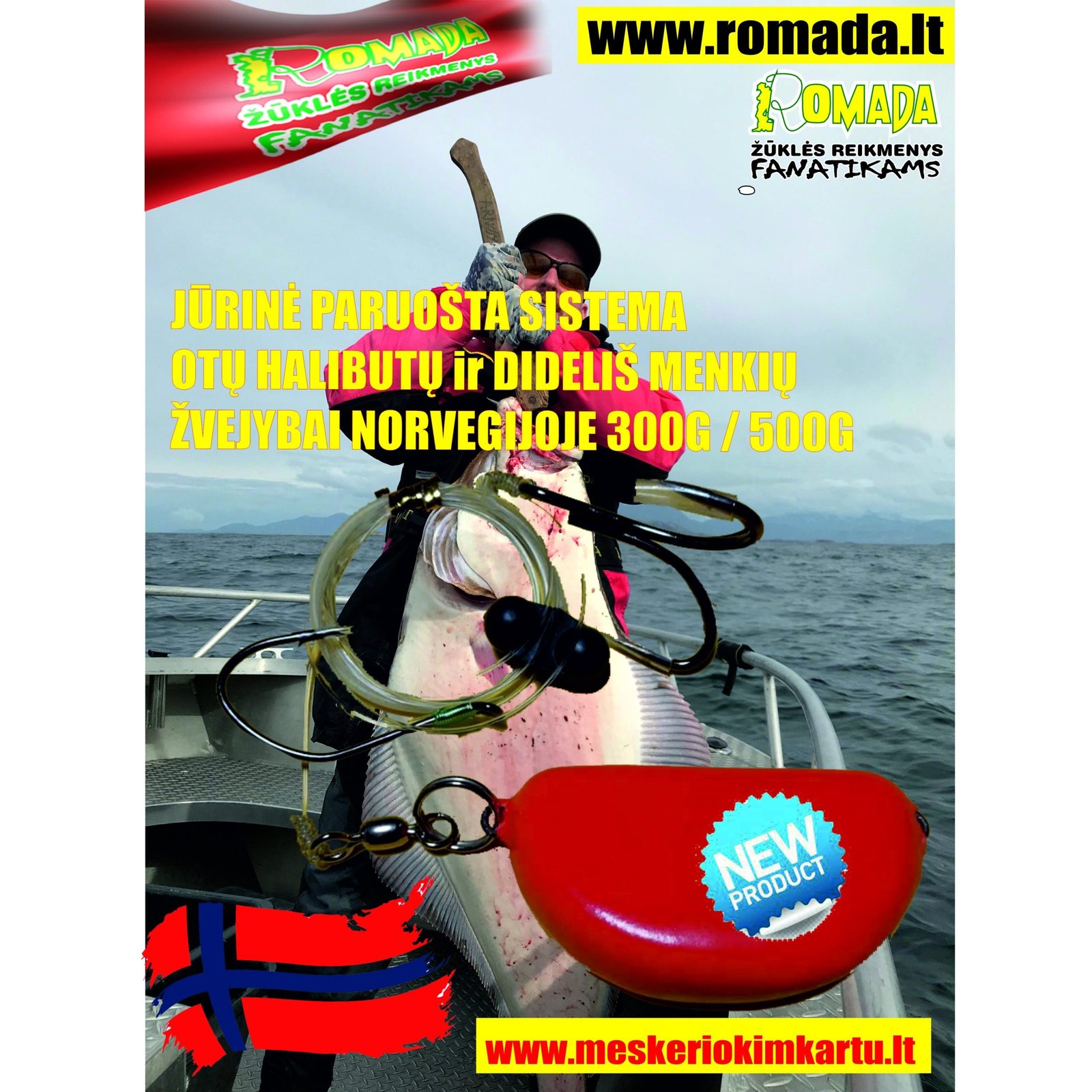 Naudodami naują Jūrinę sistemą, jūs dalyvaujate didelių žuvų žvejyboje Norvegijoje pvz. Otas (Paltusas) Halibut ar Didelių menkių žūklėje, kai Otas Halibutas (Paltusas) tyrimų rezultatai rodo, kad padidinto susidomėjimu jo mėgstamiausias maistas yra tikra žuvis. Tai mailius Jūrinio ešerio, mažos menkės mailius, Makrelė Skumbrės mailius ar Saidos, bei Silkės , be to galima naudoti , kaip stinger sistemą dideliais guminukams. Labai efektyvi sistema užmetus iš katerio gala, kad nemaišytu kitiem meškeriotojams žvejoti, atleidžiate valą iki dugno ir pakeliate kokius 5m nuo dugno ir paliekate velkiauti. Masalas natūraliai juda paskui kateri gerai vilioja dideles plėšrūnes.