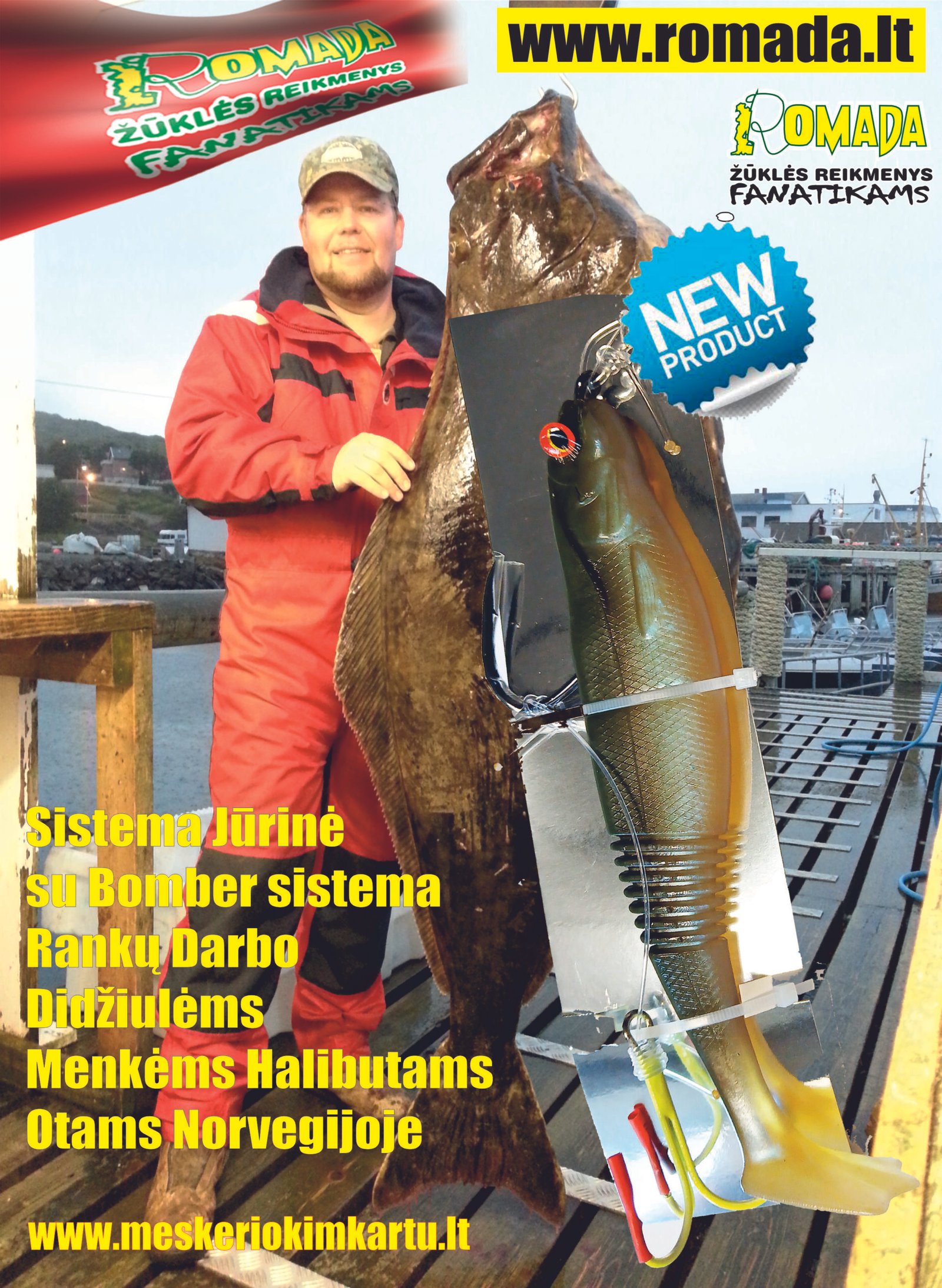 Sistema jūrinė velkiavimui Menkėms Halibutams Otams UV, be pilkerio. Sistemą sudaro: VMC neon spalvos trišakis Nr.3/0, vienšakis Nr.5/0, guminukas 1 vnt ilgis 20cm, guminuko spalvos – UV keičia spalvas, valo storis 1mm, specialūs galingi suktukai ir specialus trolling svarelio laikiklis, atlaikys 120kg ir daugiau. Rankų darbo kibiausią sistemą Norvegijoje! Surišta taip, kad ją galime naudoti dvejopai – pirmas variantas jau paruoštas su specialiais guminukais. Antras variantas- galima žvejoti su negyva žuvele, užmaunant ją kaip guminuką ant sistemos.