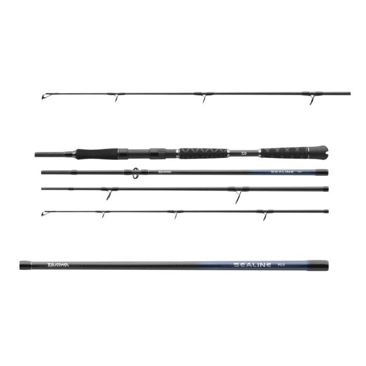 „Sealine Pilk“ – galingos jūrinės meškerės Šiaurės ir Baltijos jūroms bei Norvegijai. Su „Sealine Pilk“ meškerėmis „DAIWA“ pristato modernią galingų jūrinių meškerių seriją, specialiai sukurtą naudoti Šiaurės ir Baltijos jūrose, taip pat sudėtingoms žvejyboms Norvegijoje. Didelio modulio anglies pluošto ir specialaus X formos apvado rankenos dalyje derinys užtikrina puikią pusiausvyrą ir puikų valdymą net ir sudėtingomis sąlygomis. Ergonomiškos formos priekinė EVA rankena suteikia maksimalią kontrolę kovojant su stipriais jūriniais plėšrūnais, o galinė rankena, pagaminta iš susitraukiančio vamzdelio su X formos paviršiumi, užtikrina patvarumą ir saugų laikymą. Dėl jautraus galiuko veikimo masalus galima puikiai pagyvinti ir sumažėja rizika, kad jie iškris žvejojant. Sūriam vandeniui atsparūs „Seaguide“ žiedeliai su tvirtais cirkonio įdėklais lengvai atlaiko ekstremalias jūrinės žvejybos apkrovas. Jie tinka tiek fiksuoto būgnelio ritėms, tiek daugiafunkcėms ritėms ir garantuoja patikimą veikimą. Įrangą papildo klasikinis, tvirtas DPS ritės laikiklis. „Sealine Pilk“ – tvirtumas, pusiausvyra ir bekompromisė galia jūrinei menkių, saidų ir saidų žvejybai. Keturių dalių „Sealine Pilk“ serijos modeliai stebina kompaktišku, vos 65 cm ilgio pakavimo dydžiu, todėl lengvai telpa į bet kokį bagažą. Plonas, lengvas blankas, pagamintas iš HMC+ anglies pluošto, savo našumu niekuo nenusileidžia dviejų dalių meškerėms ir pasižymi dideliais galios rezervais. Bendras 2,40 m ilgis suteikia šiems meškerėms universalumo – tiek pilkavimui, tiek guminių masalų, tiek lengvų otų žvejybai, tiek menkių ir saidų žvejybai.