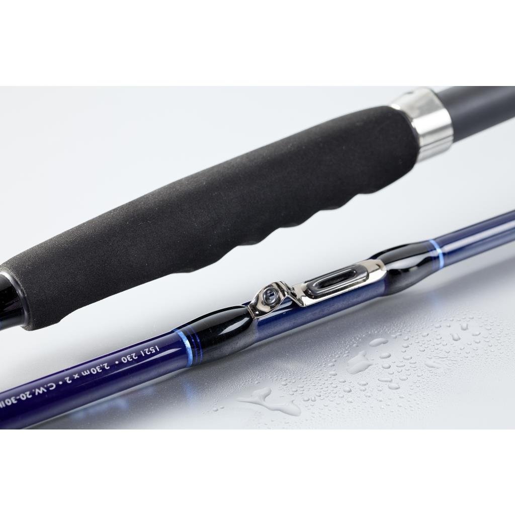 Ilgis 2.30 m, užmetimo svoris 12-25LB, transport. ilgis 156cm, 2 dalys, svoris 339g Inliner jūriniai spiningai kurių visi žiedai paslėpti spiningo viduje NAUJA tendencija! 2 sekcijų meškerė – idealiai tinka žvejybai Norvegijoje ir saloje. Valas eina per spiningo vidų (einantis valas). Pagaminta iš labai tvirto anglies ir stiklo pluošto mišinio. Komplektuojama su valui skirta „Threader“. Su šiuo spiningu jūs užmiršite, kas yra susipainiojimas valo, valo užsimetimas už žiedų, kada jūroje stiprus bangavimas tai labai aktualu. Tokio spiningo kuriame valo gija eina per patį spiningą ir niekas nesipainioja gerai save užsirekomendavo meškeriojant su elektrinėmis ritėmis Norvegijoje. Tai viena iš geriausių jūsų pasirinkimų vykstant į Norvegiją, išbandyta Romada Komandos jau kelerius metus ir niekada nenuvylė traukiant stambius otus Halibutus, Menkes ir kitas plėšrūnes.