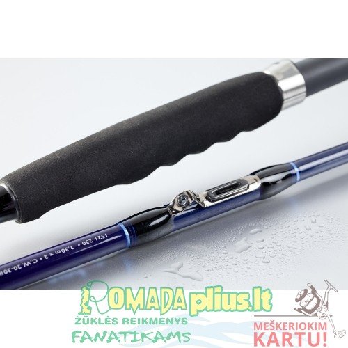 Ilgis 2.30 m, užmetimo svoris 30-50LB, transport. ilgis 156cm, 2 dalys, svoris 439g Inliner jūriniai spiningai kurių visi žiedai paslėpti spiningo viduje NAUJA tendencija! 2 sekcijų meškerė – idealiai tinka žvejybai Norvegijoje ir saloje. Valas eina per spiningo vidų (einantis valas). Pagaminta iš labai tvirto anglies ir stiklo pluošto mišinio. Komplektuojama su valui skirta „Threader“. Su šiuo spiningu jūs užmiršite, kas yra susipainiojimas valo, valo užsimetimas už žiedų, kada jūroje stiprus bangavimas tai labai aktualu. Tokio spiningo kuriame valo gija eina per patį spiningą ir niekas nesipainioja gerai save užsirekomendavo meškeriojant su elektrinėmis ritėmis Norvegijoje. Tai viena iš geriausių jūsų pasirinkimų vykstant į Norvegiją, išbandyta Romada Komandos jau kelerius metus ir niekada nenuvylė traukiant stambius otus Halibutus, Menkes ir kitas plėšrūnes.