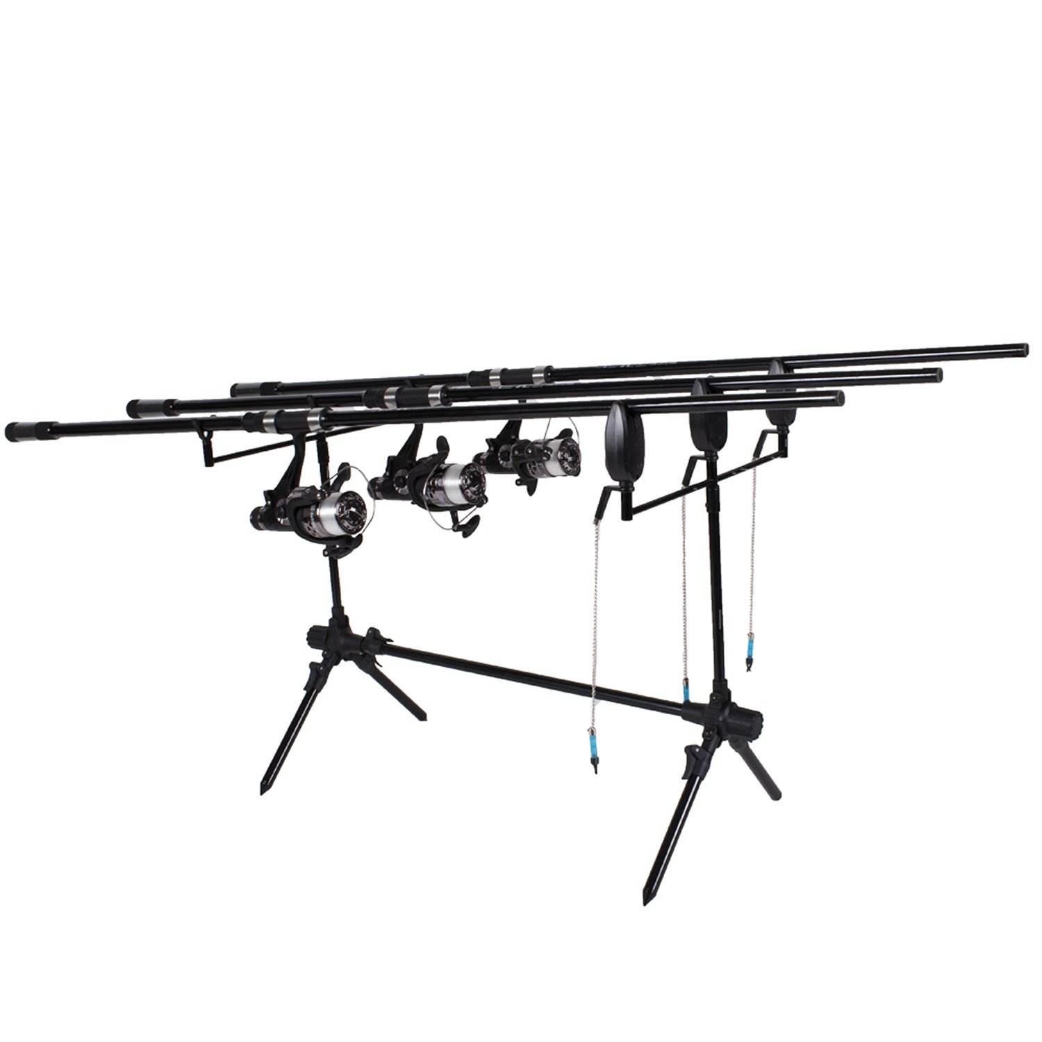 Startas Karpinis Pilnas komplektas 3- Meškerės su Ritėmis su valu, Stovas, Kibimo sensoriai+Swing indikatoriai+Dėklas