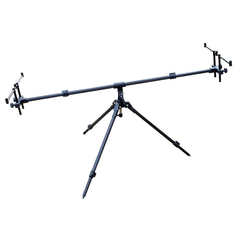 Profesionalus trikojis karpių gaudymo stovas puikiai tiks bet kokiai karpių žūklės sesijai ir ne tik. Tvirtas, stabilus, pagamintas iš tvirto milteliniu būdu dažyto plieno, su buz strypais 3 meškerėms. Stovas turi didelę aukščio ir meškerių pasvirimo kampo reguliavimo galimybę vandens paviršiaus atžvilgiu. Trikojis stovas 3 meškerėms, turi standartinius sriegius, tinka visiems rinkoje esantiems indikatoriams. Komplekte yra dėklas.