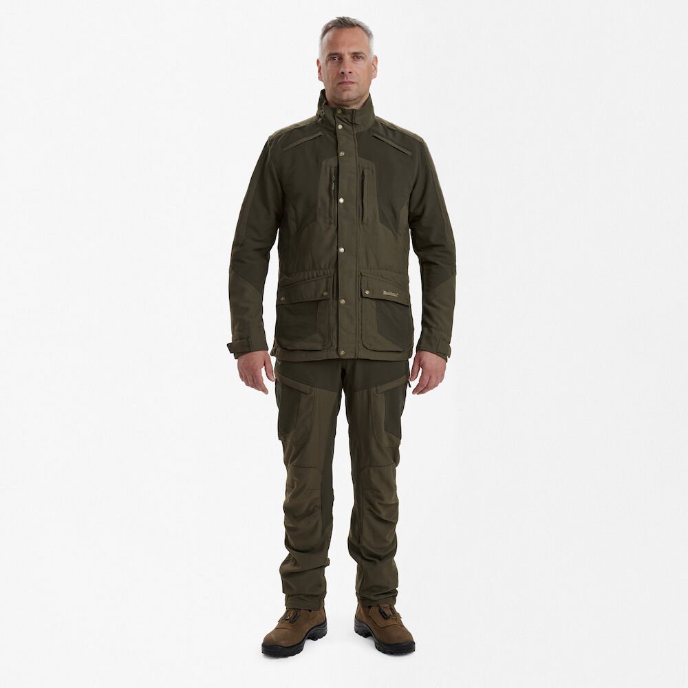 „Deerhunter Strike“ serija buvo sukurta siekiant įveikti sudėtingą ir įvairų reljefą, tuo pačiu užtikrinant naudotojui maksimalų komfortą ir judrumą dėl tamprios medžiagos naudojimo. Ji puikiai tinka medžioklei, veiklai lauke ir žygiams pėsčiomis, tiek miške, tiek kalnuose. Dėl hidrofobinės dangos, padengtos visa kolekcija, galime būti tikri, kad lietus mūsų neužklups netikėtai. Visos „Strike“ kolekcijos funkcionalumą apibendrina jos šūkis: „Įkvėpta gamtos, sukurta nuotykiams“.
