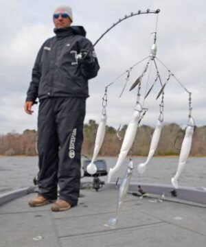 Naujausios tendencijos iš neribotų žvejybos galimybių šalies (JAV). Iš pirmo žvilgsnio „lyderis“ atrodo kiek keistai ar net juokingai; bet tai jus nustebins! Jis tiesiog pritvirtinamas prie pagrindinio valo – o šone pritvirtinami 5 masalai guminukai , mažos bligutės, sukrės ir kt. „Umbrella-Rig“ skirtas mėtyti ar trolinti. Ne tik gėlo vandens meškeriojimui; taip pat puikiai tinka plekšnėms, grudulams ir kitom žuvims žvejoti Baltijos jūroje. „mbrella-Rig“ sukuria mailiaus būrelio imitaciją – plėšriosioms žuvims tampa labai įdomus ir kibus masalas. Išbandyk nepasigailėsi.