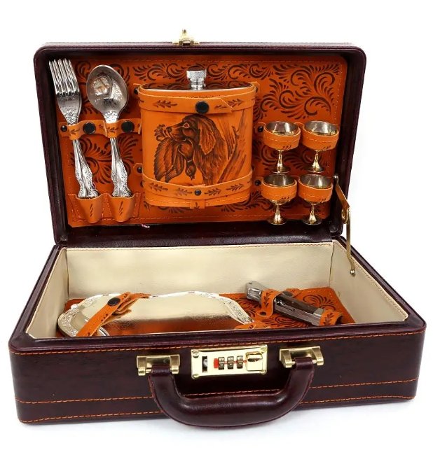 Dovanų Komplektas Fisherman Hunter rinkinys Picnic Gamtoje +Odinis Diplomatas Žvejui arba Medžiotojui dovana
