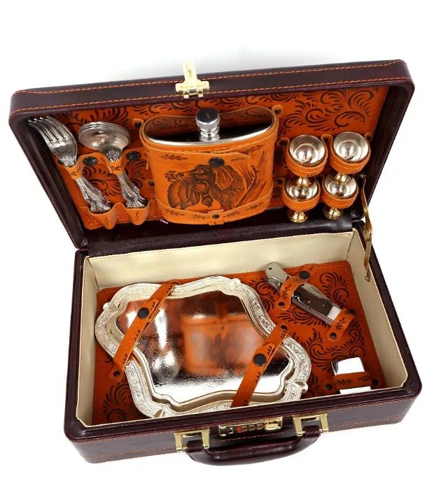 Su šiuo rinkiniu jums nereikės sukti galvos, ką pasiimti su savimi vykstant į lauką Medžioti , Žvejoti, poilsiauti gamtoje: viskas, ko reikia malonioms atostogoms šešių žmonių grupei, jau sukaupta kompaktiškame, patvariame lagaminėlyje. Su šiuo komplektu lengva suorganizuoti patogias atostogas šešių žmonių kompanijai. Termosas sušildys karštus gėrimus, žiebtuvėlis padės užkurti ugnį, o Gertuvėje tilps viskas, ko tik norisi. Todėl geras sprendimas būtų įsigyti dovanų rinkinį iš Dovanų Komplektas Fisherman Hunter rinkinys Picnic.
