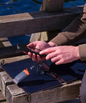 Šiame rinkinyje yra Deeper CHIRP+ 3 užmetamas sonaras ir sulankstomas saulės įkroviklis.