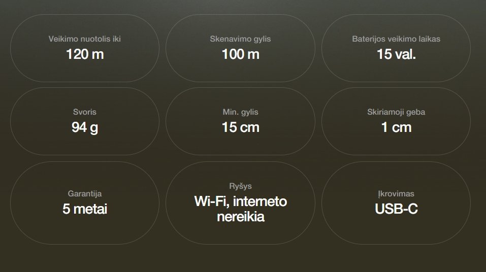 Veikimo gylis iki ~100 m