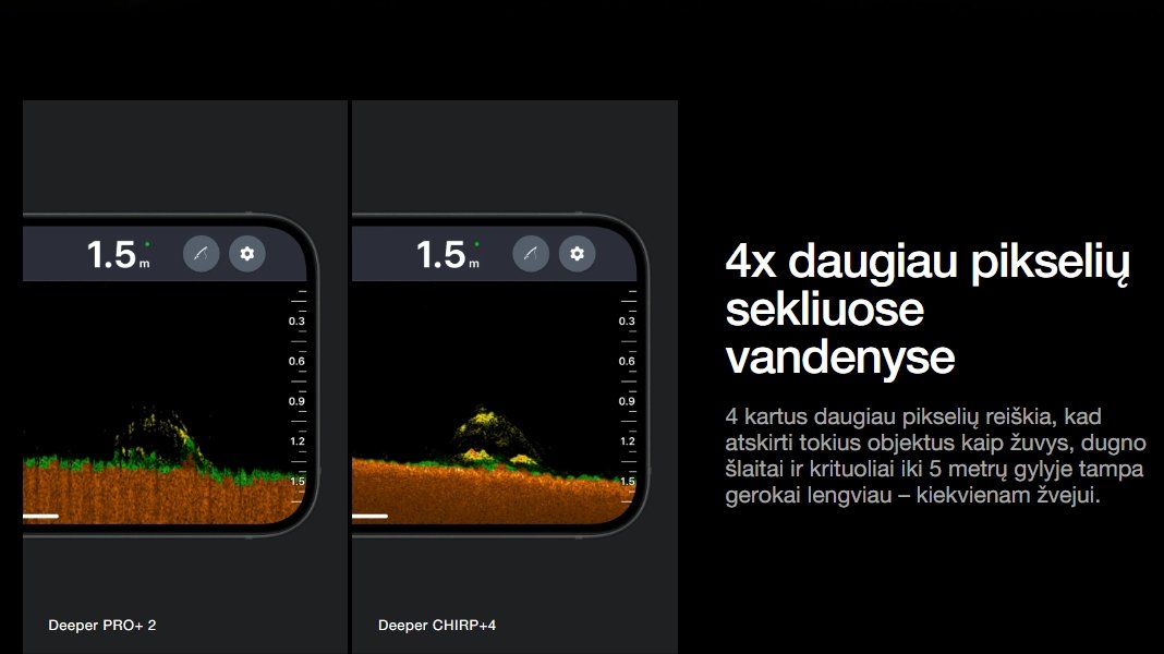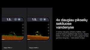 Didelis „CHIRP+ 4“ privalumas – integruotas dirbtinis intelektas, kuris realiu laiku analizuoja signalus ir padeda tiksliai identifikuoti žuvis, sumažindamas klaidingų rodmenų tikimybę. Tai reiškia, kad mažiau laiko skirsite duomenų interpretavimui, o daugiau – pačiai žvejybai.