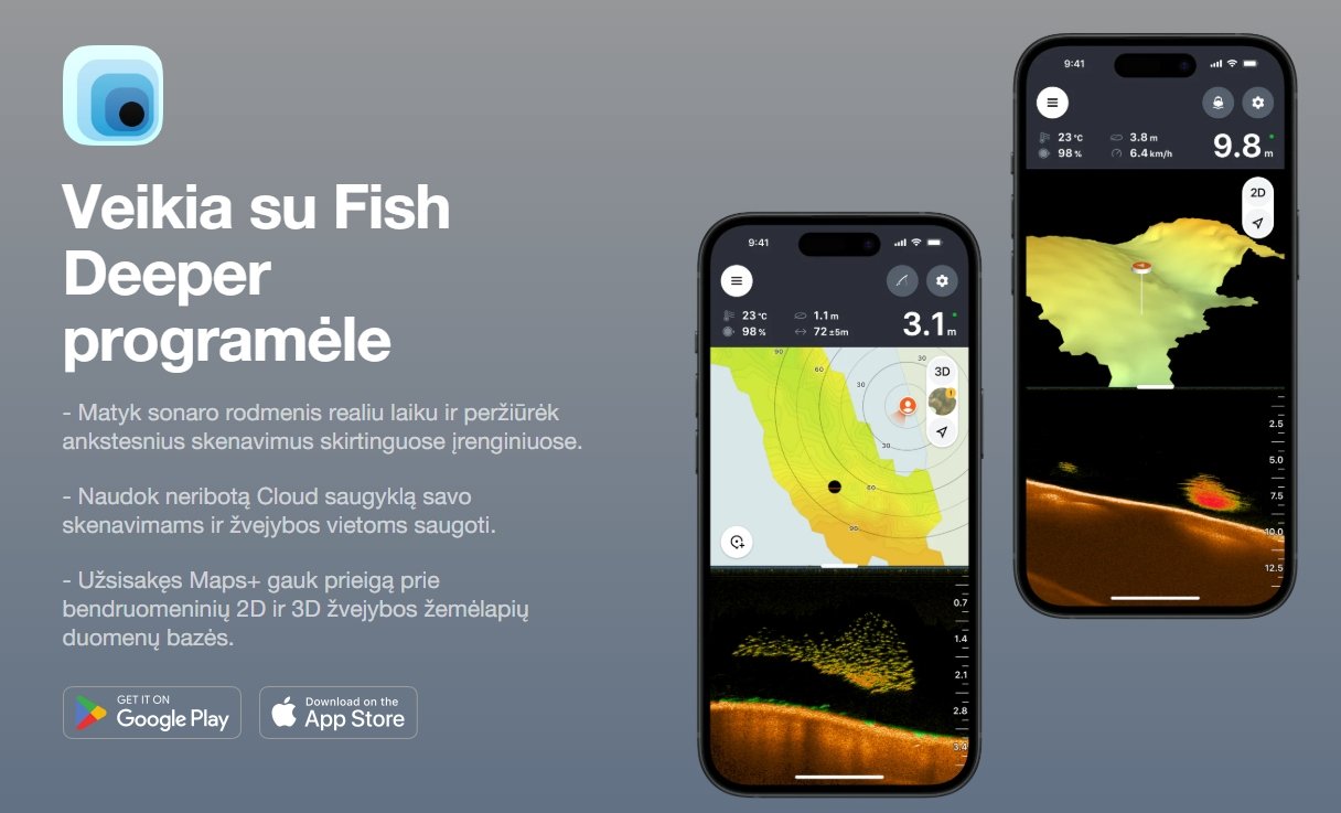 Naudodamiesi išmaniąja programėle galėsite kurti detalius 2D ir 3D vandens telkinių žemėlapius, pažymėti produktyvias žvejybos vietas bei analizuoti ankstesnius duomenis. Tai ypač naudinga planuojant žvejybą ar grįžtant į jau patikrintas vietas.