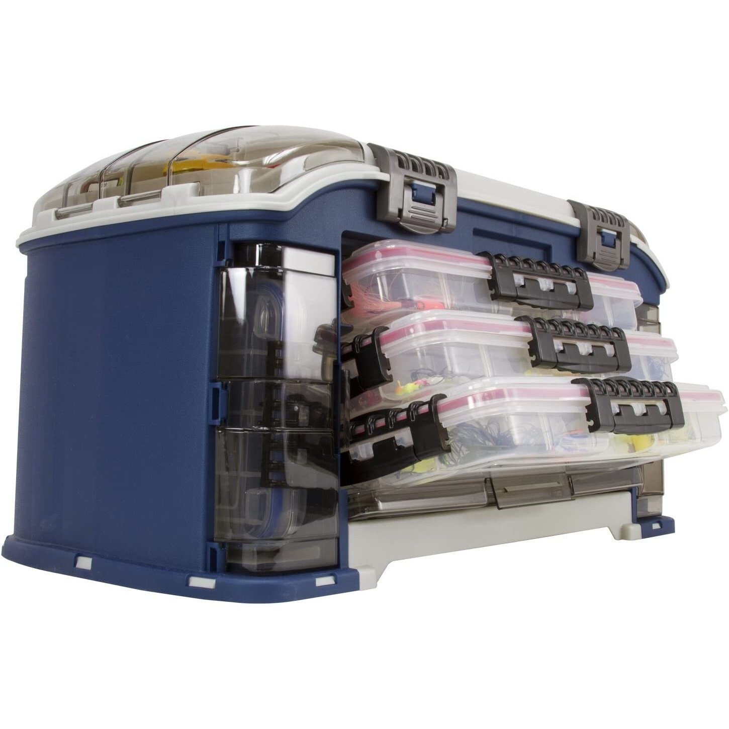 Mūsų Elite™ serijos reikmenų sistema pagrindiniame skyriuje pateikia reikmenų dėžes 15 laipsnių kampu, kad būtų lengviau pasiekti. Be to, gausite išplečiamą galinę kišenę, kurioje galėsite laikyti būtiniausius žvejybos reikmenis, permatomus DuraView dangčius, neslystančias gumines kojeles ir kt. Yra šešios vandeniui atsparios StowAway® dėžutės: trys 3740 dėžutės, dvi 3640 dėžutės ir viena 3440 dėžė. Made in USA. Matmenys: 58,4cm x 31,1cm x 31,1cm.