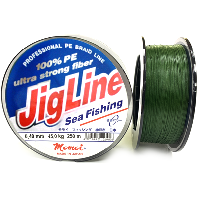 Visi Momoi Jiglines turi apvalų skerspjūvį, kuris užtikrina minimalią trintį žieduose ir sumažina vėjo bei srovės poveikį valui. Didelio stiprumo pintas valas žvejybai jūroje. Papildoma apsauginė danga nuo druskos poveikio – ilgas tarnavimo laikas agresyviame jūros vandenyje. Apvali dalis – lygi, mažo atsparumo metimui, atspari dilimui. Minimalus higroskopiškumo lygis. Minimalus tempimas – dideliu atstumu išlaiko didelį kibimo jautrumą ir tikslią valdymą kovoje. Jūrinei žvejybai optimaliai parinktas diametrų diapazonas: 0,45-0,5 mm. Didelis stiprumas sėkmingai kovai su didelėmis jūrinėmis žuvimis – atlaiko apkrovas iki 60 kg. Spalva – chaki.