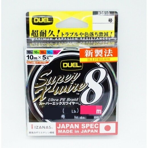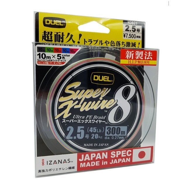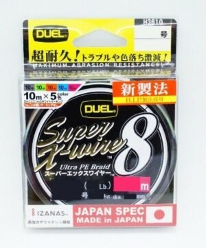 Made in Japan pintų valų šeimoje Duel (Yo-zuri) pintas valas Super X8 užima garbingą vietą. Kas pagaminta Japonijoje, reiškia išskirtinę kokybę. Ne išimtis ir šie japoniški valai. Supinti iš 8 gijų, naudojant H.I.P technologiją (angl. heat integration process). Audinys – IZANAS (gamintojas – korporacija Toyobo), ultra stiprios gijos iš polietileno, labai tvirtai supintos. Tikrai apvalus ir slidus, geri išlaikymo duomenys. 150m suvyniojimo valo spalva skaidriai pilka, o 300m 5 spalvų multicolour. 300m valo ritinėlis idealiai tinka lašišų ir šlakių žūklei.