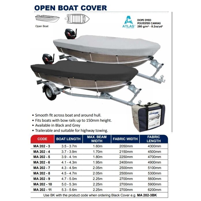 Once you have these 2 overall measurements refer to the below table showing the overall cover dimensions for each size of cover offered and match up to arrive at the best fit for your boat.
