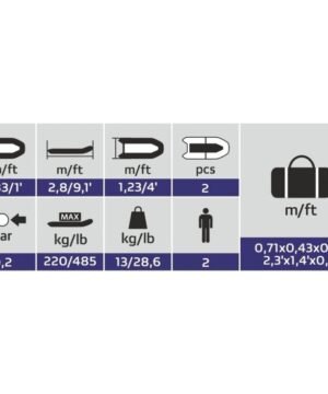 • 2 irklai su irklų laikikliais irklų spynelėje;