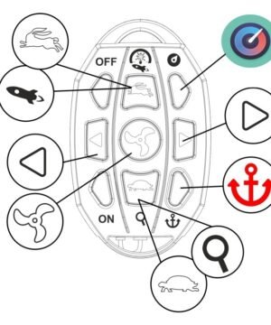 Valdymas: belaidis FOB nuotolinio valdymo pultas (standartinis) su taškinio užrakto ir greičio palaikymo funkcijomis , Helmsman APP (standartinis)