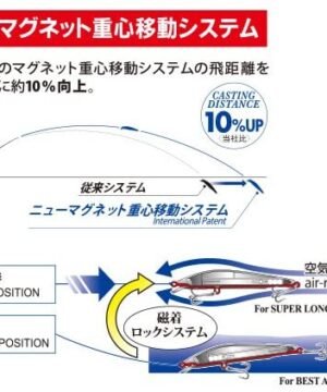 Puikusis Mag Minnow iš Yo-Zuri pirmiausia buvo kuriamas taikant į jūrinę žvejybą, seabas’ui, skumbrei, stauridei gaudyti, bet be to šis vobleris puikiai pasirodė mūsų vandenyse gaudant šlakius, lašišas ir lydekas. Dėka aptakių formų ir didelio svorio su slankiojančiu svareliu, masalą eina užmesti labai toli. Mag Minnow puikiai dirba tiek tolygiai, lėtai traukiant, tiek nardo į šonus „tvičinant”. Kokybiškas plastikas, labai atsparus dilimui ir žūvų dantims padengimas, bei fantastiškas spalvinimas, kuris nepaliks abejingo nei žvejo, nei žuvies.