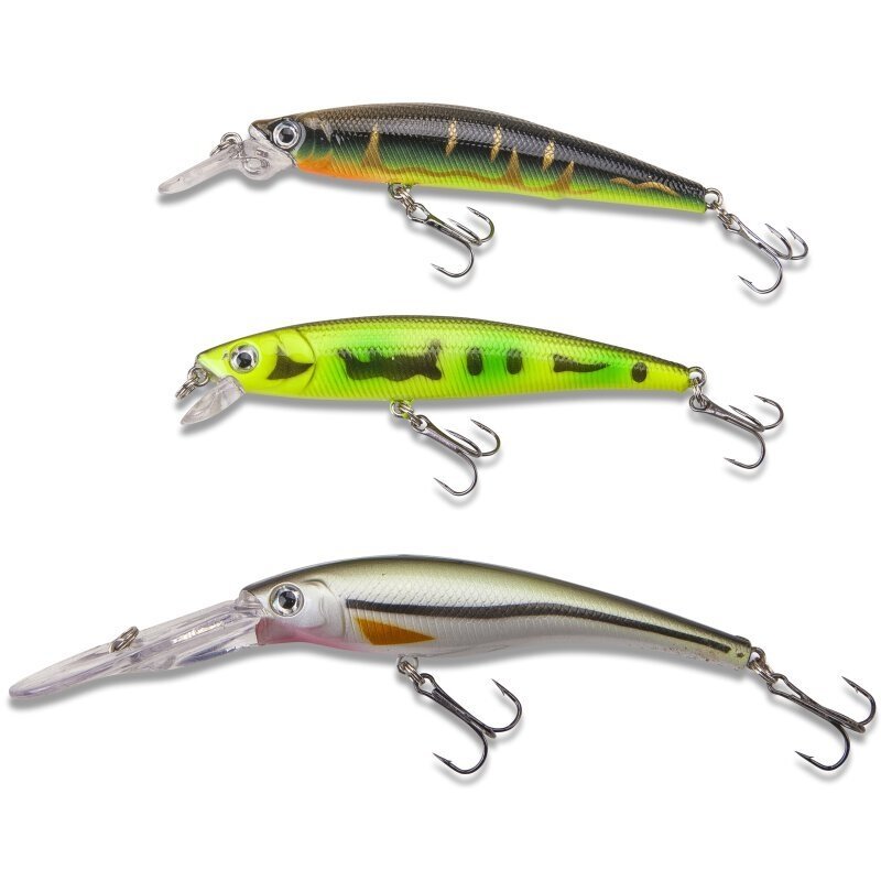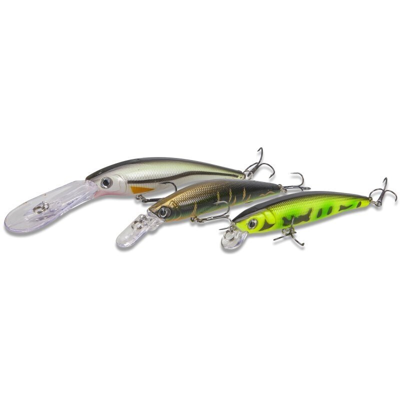 Po ilgo testavimo etapo į galutinę atranką pateko tik tie masalai, kurie 100% atitiko mūsų konsultantų reikalavimus. Tarp kriterijų buvo, pavyzdžiui, eksploatavimo ir dizaino kokybė, valdymo paprastumas ir galiausiai – ar ant voblerio buvo sugauta žuvis. Apdorojimas, nardymo liežuvėlis, fiksavimo žiedai ir kabliukai iškart įtikins kiekvieną meškeriotoją ir garantuoja gaudymo sėkmę. Komplekte yra itin ploni ir itin veiksmingi vobleriai, kurie gali būti valdomi itin lėtai ir vis tiek užtikrina tikslų šonavimą. Čia negali atsispirti ypač patyrusios ir drovios žuvys.