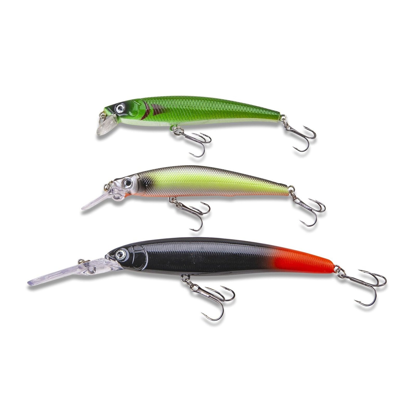 Po ilgo testavimo etapo į galutinę atranką pateko tik tie masalai, kurie 100% atitiko mūsų konsultantų reikalavimus. Tarp kriterijų buvo, pavyzdžiui, eksploatavimo ir dizaino kokybė, valdymo paprastumas ir galiausiai – ar ant voblerio buvo sugauta žuvis. Apdorojimas, nardymo liežuvėlis, fiksavimo žiedai ir kabliukai iškart įtikins kiekvieną meškeriotoją ir garantuoja gaudymo sėkmę. Šis rinkinys – tai išskirtinis mūsų specialistų voblerių pasirinkimas, specialiai sukurtas stambioms lydekoms gaudyti. Į komplektą įeina stipriai šonuojantys, bet vis dar stabilūs vobleriai, kurie yra trūkčiojami ar tiesiog įvyniojami, sukuriantys ypač dideles slėgio bangas, kurios vilioja įkandinėti net labiausiai patyrusias ir droviausias žuvis.