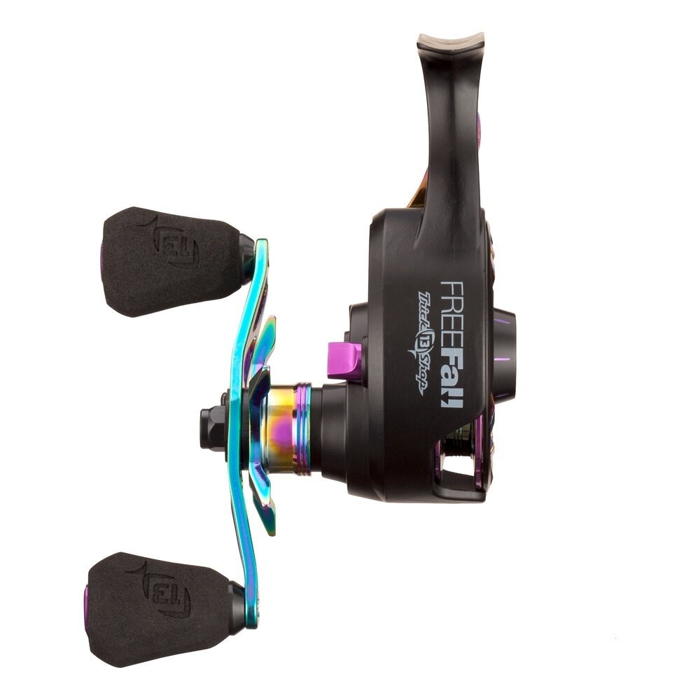 „13 Fishing’s FreeFall Carbon“ turi revoliucinę „FreeFall“ funkciją, kuri leidžia lengviau paleisti masalą, naudojant paprastą valdymą viena ranka. Revoliucinis „FreeFall“ gaidukas leidžia meškeriotojams naudoti blykstę, pasiekti tam tikrus gylius ir akimirksniu prisijungti atleidus gaiduką tikslinėje zonoje. Atbulinės eigos sistema akimirksniu vėl įsijungia, kad maksimaliai padidintų smūgio ir sujungimo santykį. Magnetinis kritimo greičio reguliavimo ratukas leidžia meškeriotojams reguliuoti laisvos ritės greitį, kad pasirinktų tobulą nusileidimą su įvairių svorių masalais. Keturių nerūdijančių rutulinių guolių sistema užtikrina sklandų veikimą, o puikus universalus pavarų santykis, skirtas žvejybai nuo seklios iki vidutinio gylio, padeda pasiekti puikių rezultatų. Svoris 186g. Valo talpa 0,16mm / 91m.