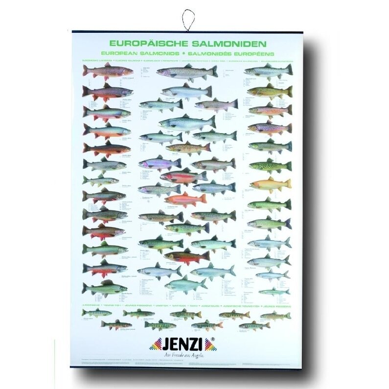 Žuvų Plakatas Mūsų Lašišinių žuvų rūšimis 100x70cm Suvenyras Dovana Žvejui žvejybos tema Germany European Salmonid Fish plakatas su vietinėmis Baltijos žuvimis. Nuotraukų spausdinimas ant aukštos kokybės 180 g fotopopieriaus