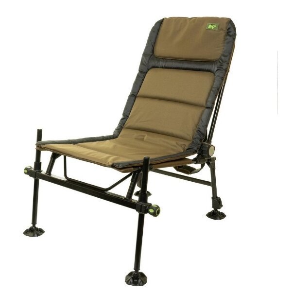 SKP Feeder Chair tikrai siūlo maksimalų komfortą žvejojant visą dieną. Su daugybe suderinamų priedų ši kėdžių sistema puikiai tinka žvejui, kuris nori, kad viskas būtų po ranka. Yra kojelė.