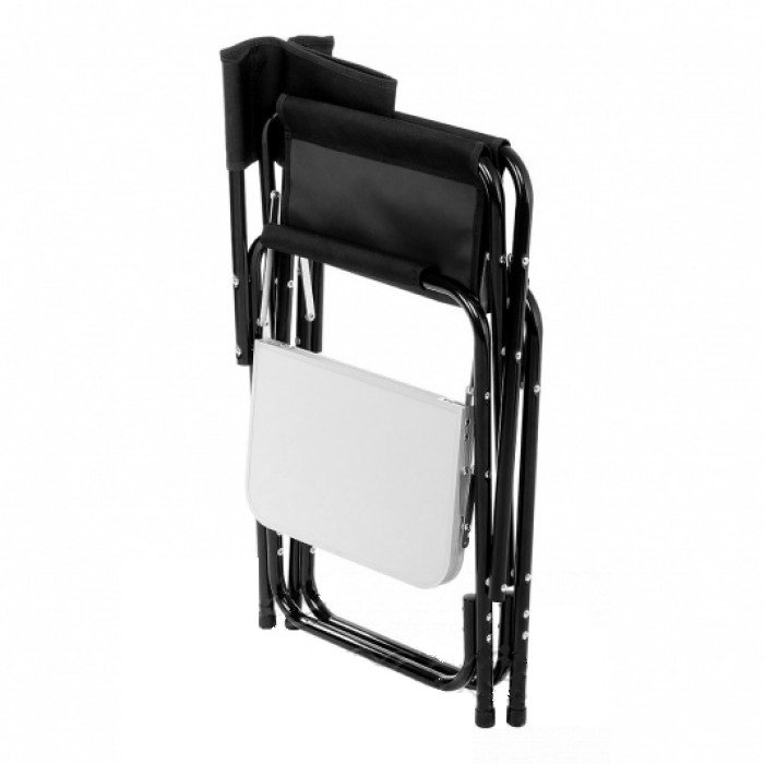 Žvejybinė kėdė su sulankstomu stalu. Matmenys: 61/85×47×48/83 сm. Transportavimo: 47×83×14 сm. Svoris: 5.3 kg. Medžiaga: Oxford 600D. Max apkrova: 120kg.