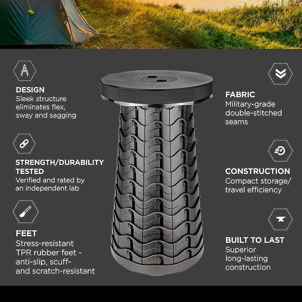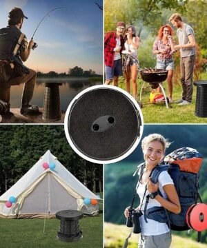 Plačiai naudojamas: Prie taburetės dugno pritvirtinamos įvairios guminės pagalvėlės, kurios pagerina gaminio atsparumą slydimui. Puikiai tinka žvejybai, stovyklavimui, kelionėms, sodininkystei.